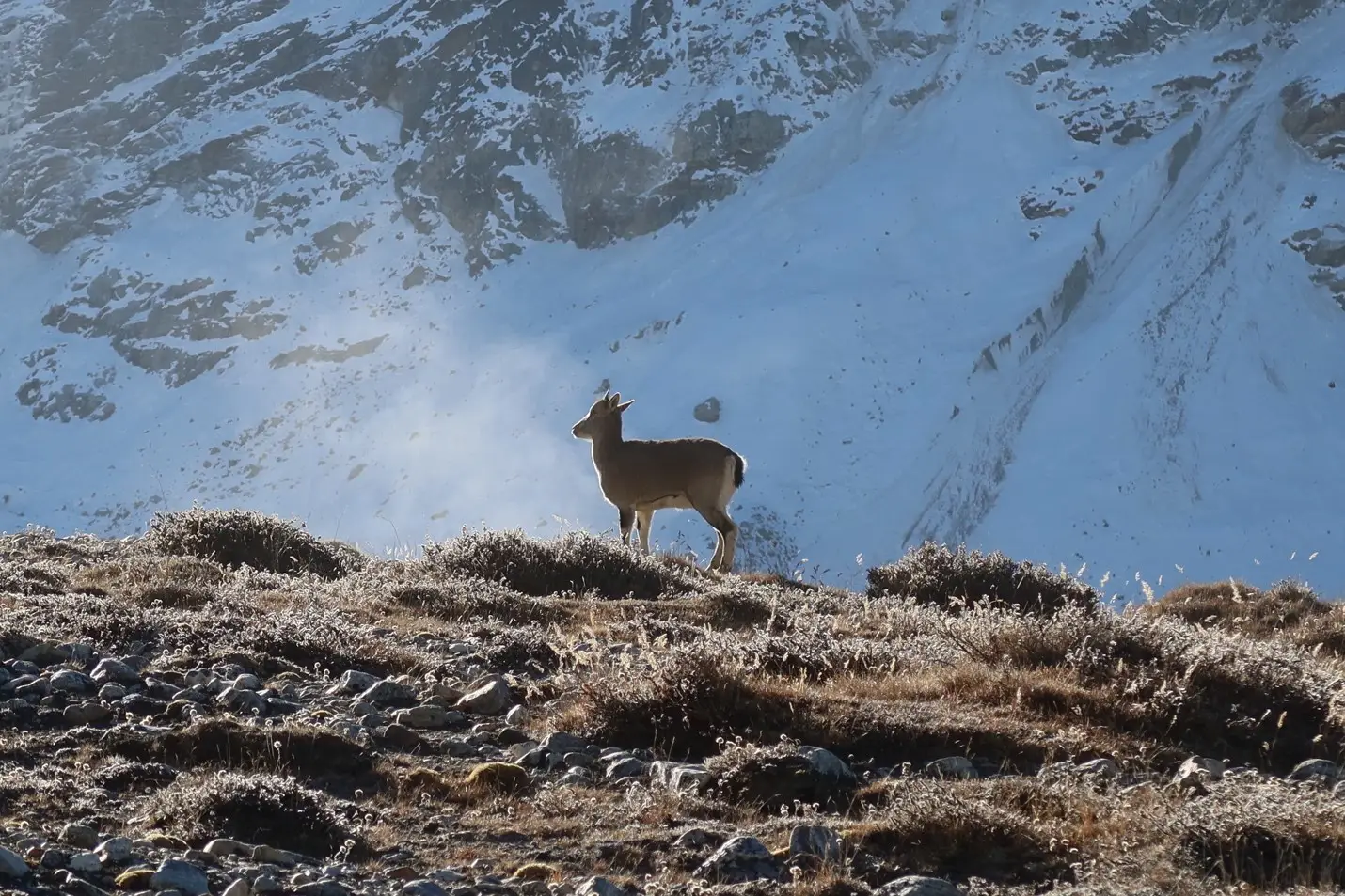 After a significant ascent yesterday and with more altitude gain ahead, it’s wise to take another day to rest and acclimatize. The elevation here should not be taken lightly. Khambachen offers stunning views of several 6,000-meter peaks right from the village. For those feeling energetic, a short hike up the northern ridge rewards with even broader mountain vistas. With some luck, we may spot blue sheep grazing on the nearby slopes