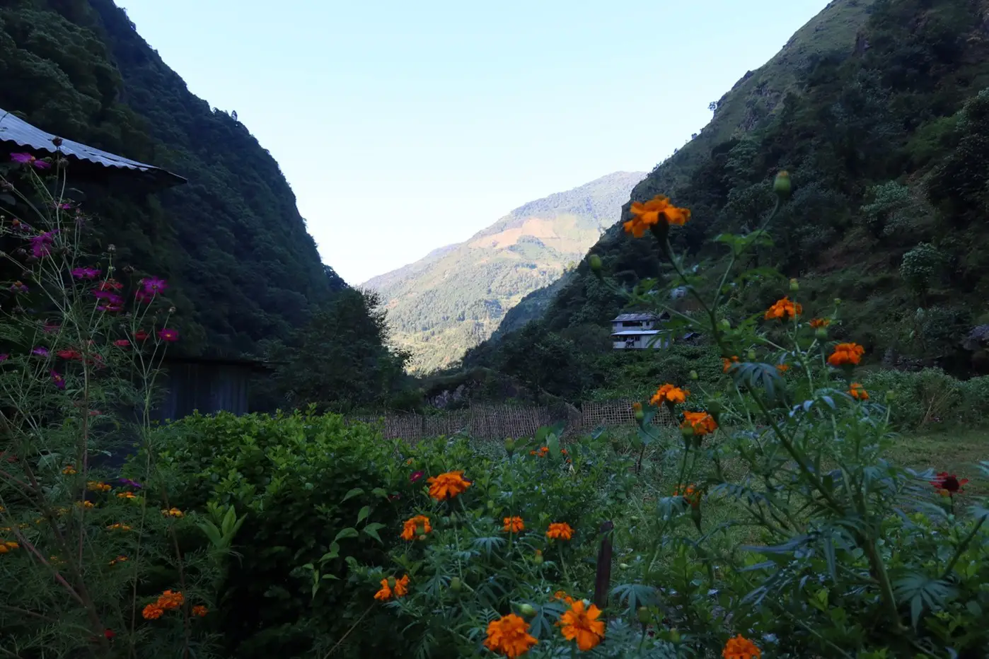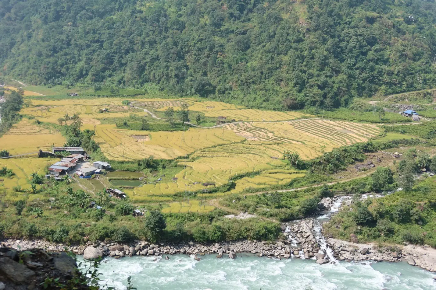 Today we have a leisurely and not too long stage ahead of us. So we will have time for an extended wash in the afternoon. We descend in the valley of the Simbuwa Khola to Tortong.