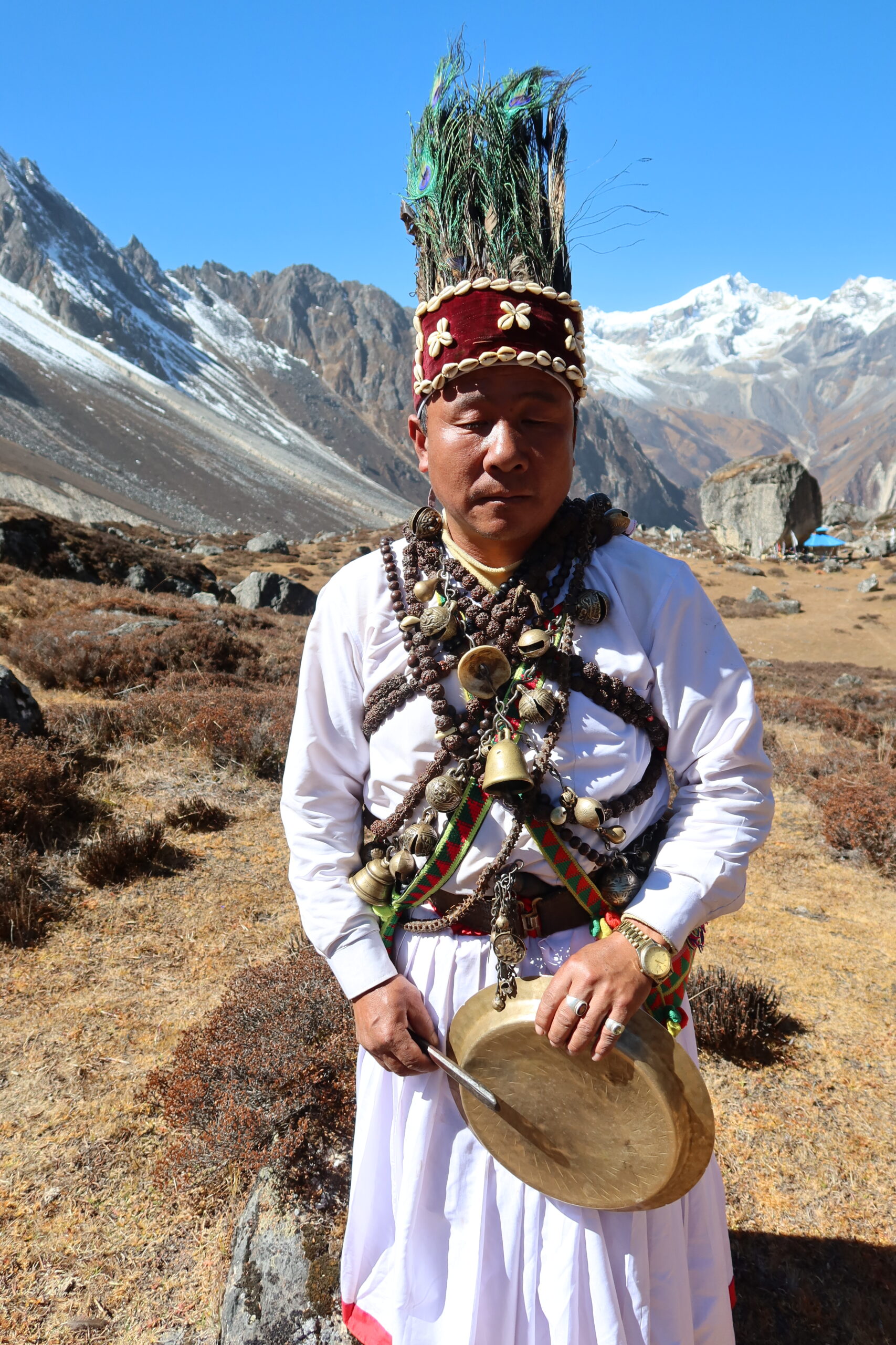 The people inhabiting the lower part of this trek are usually Rai and Limbu. Their main occupations are agriculture, livestock farming, and small businesses around the towns. They mainly follow Hinduism, while some practice Buddhism.As we move to higher altitudes, the people living there belong mostly to the Sherpa community, following Buddhism. Their major occupation is tourism, as they run tea houses, coffee shops, bakeries, and lodges for tourists visiting this region.While traveling in this region, we encountered a very special Pooja (ritual) that occurs only once every 12 years in the Rai/Limbu community. It was very interesting for us to witness. The main objective of this event is to pray for their forefathers. We got the chance to experience this event during our rest day in Khambachen.